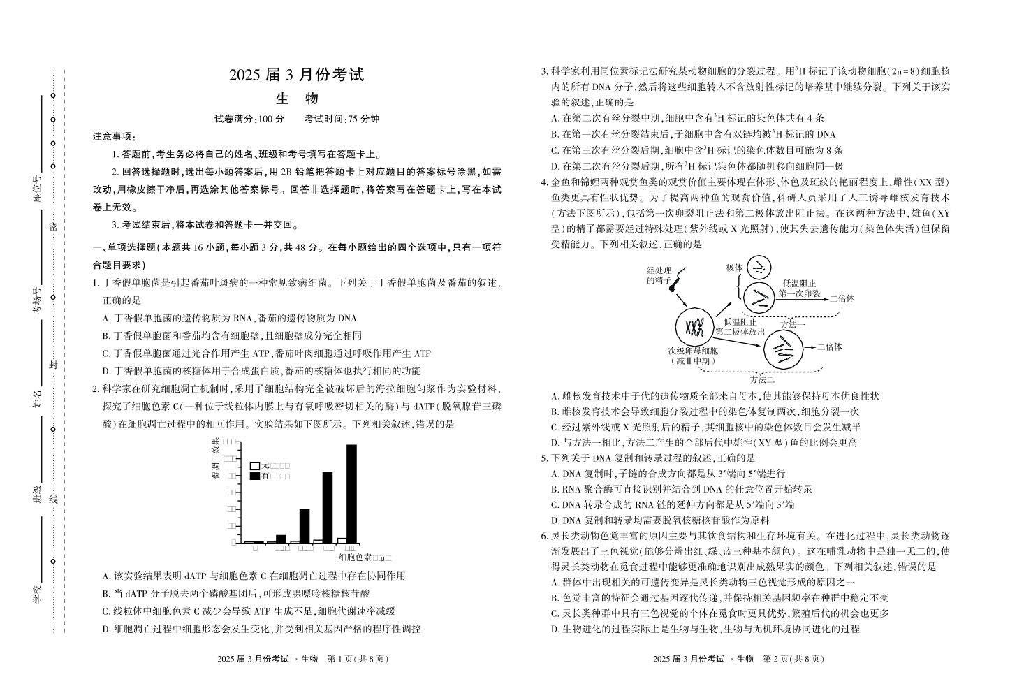 陕西省菁师联盟2024-2025学年下学期3月高三联考生物
