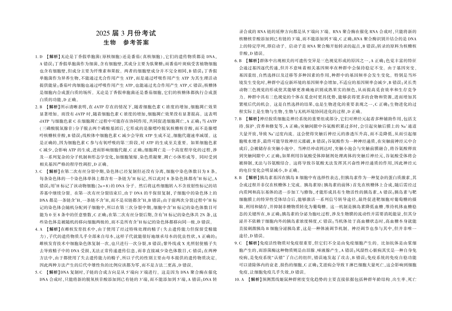 陕西省菁师联盟2024-2025学年下学期3月高三联考生物答案
