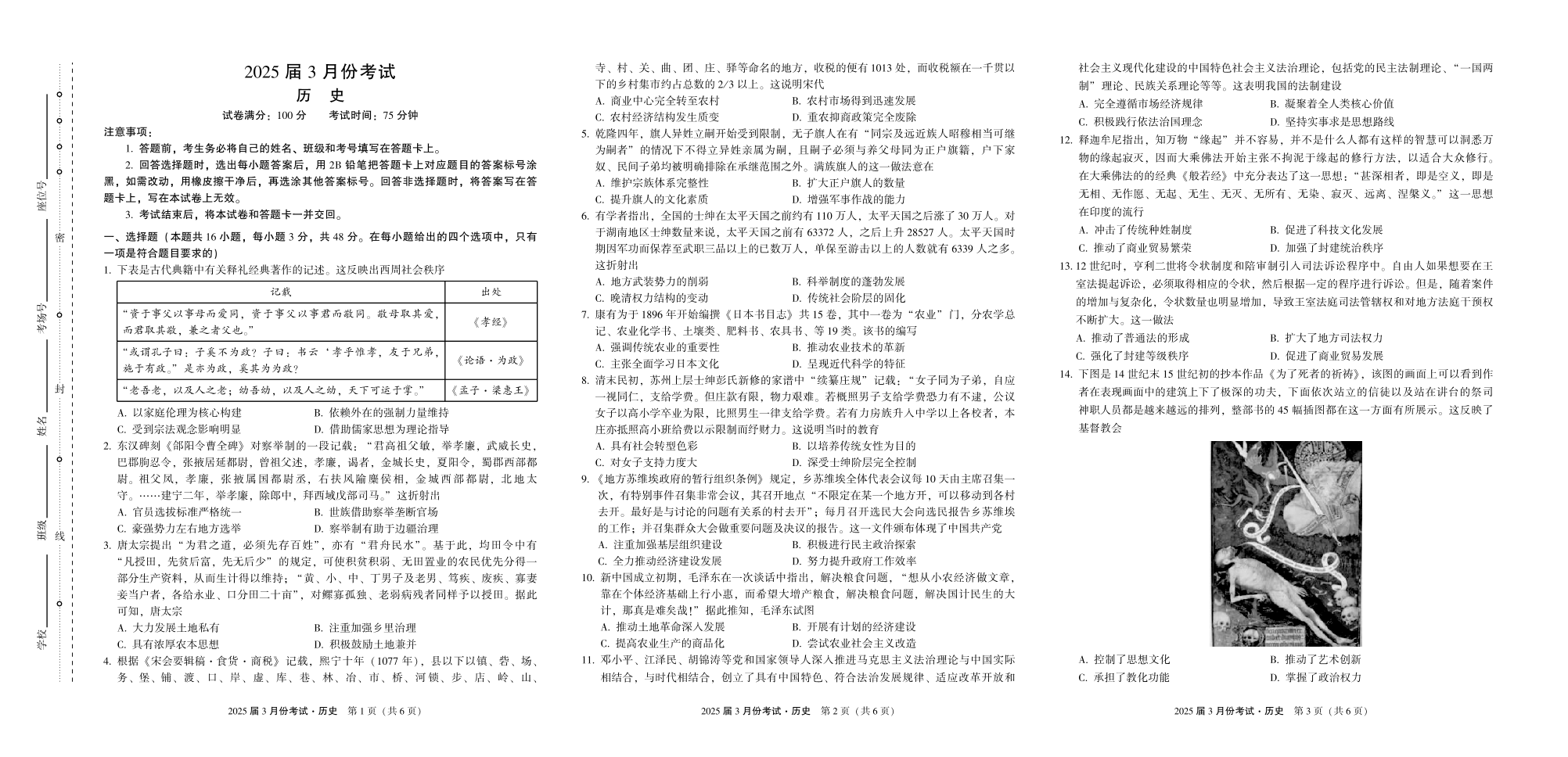 陕西省菁师联盟2024-2025学年下学期3月高三联考历史
