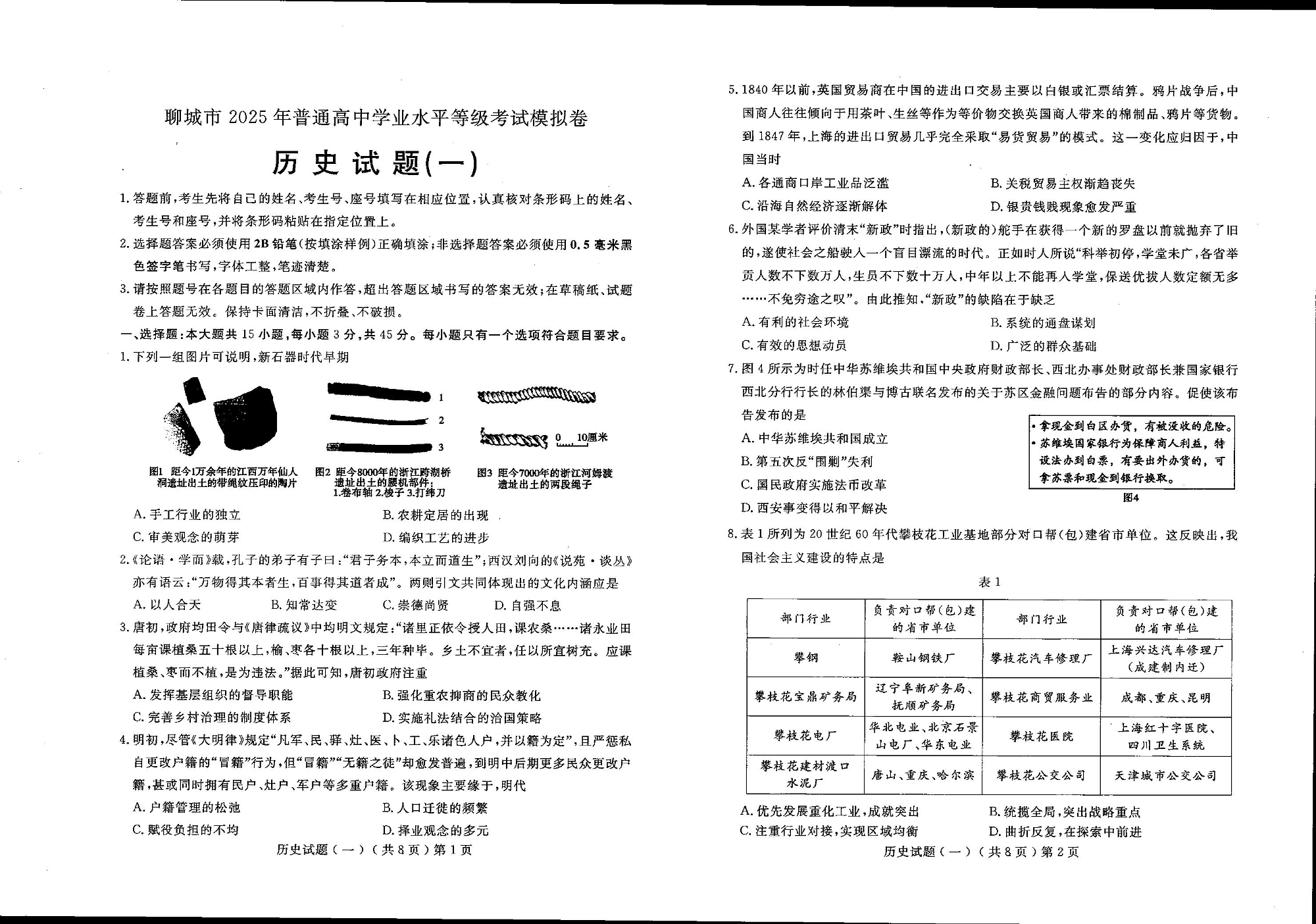 山东省聊城市2024-2025学年下学期3月高三一模考试历史