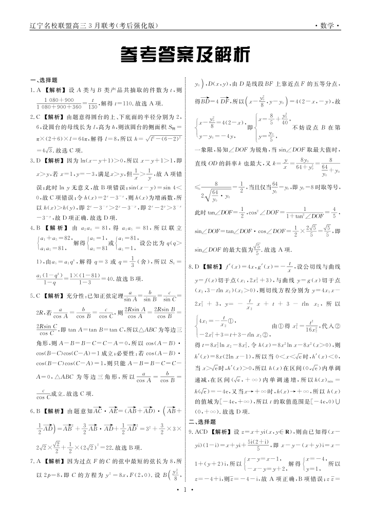 辽宁省名校联盟2024-2025学年下学期3月高三模考后强化卷数学
