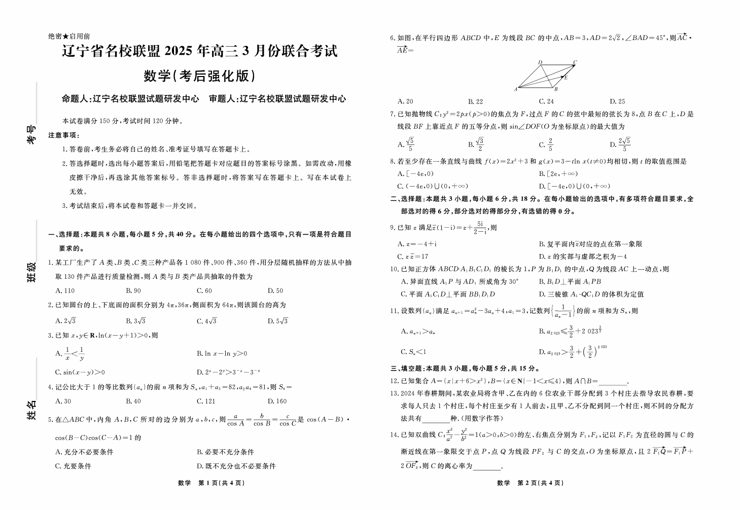 辽宁省名校联盟2024-2025学年下学期3月高三模考后强化卷数学答案