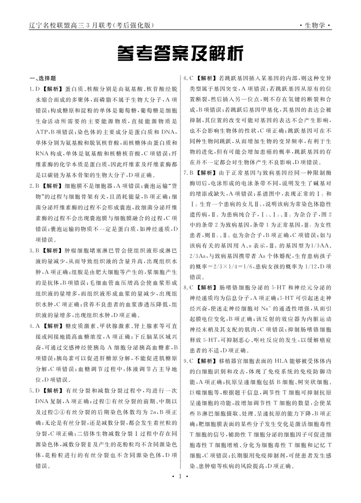 辽宁省名校联盟2024-2025学年下学期3月高三模考后强化卷生物答案