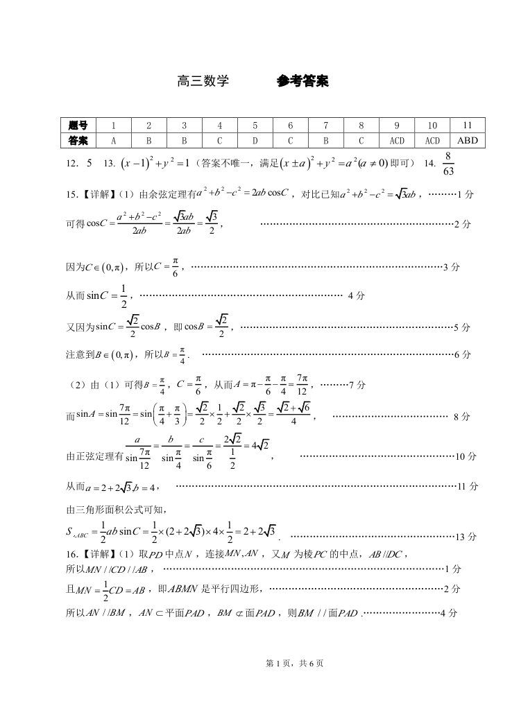 广西壮族自治区2024-2025学年高三第二次高考适应性模拟数学答案