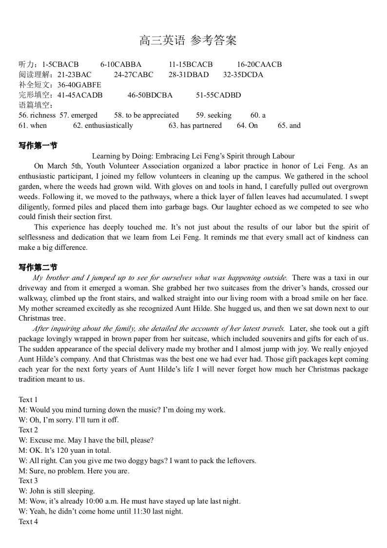 广西壮族自治区2024-2025学年高三第二次高考适应性模拟英语答案