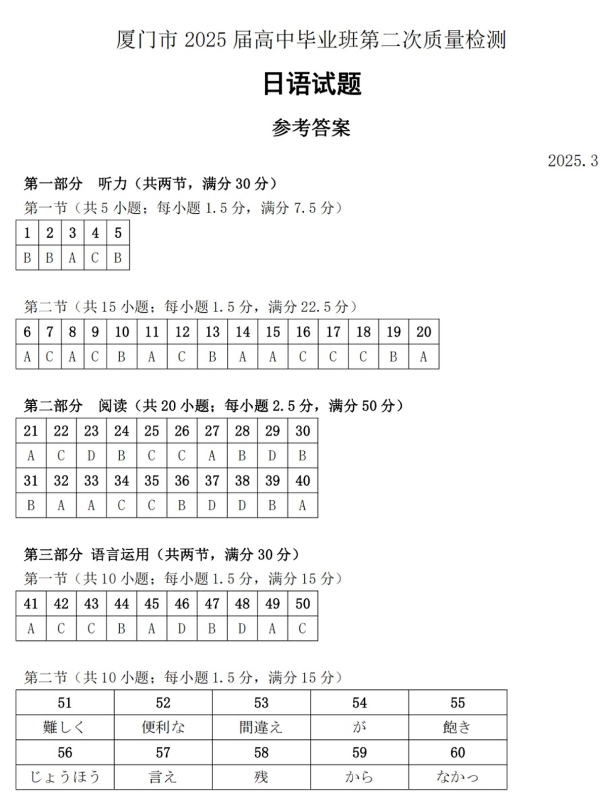 福建省厦门市2024-2025学年高三第二次质量检测(二模)英语答案