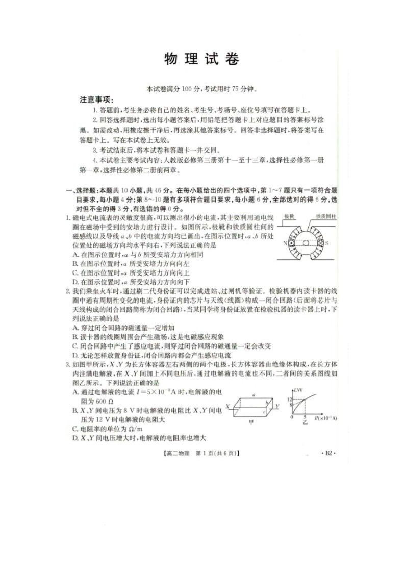 辽宁省抚顺市六校协作体2024-2025学年下学期高二期初检测物理