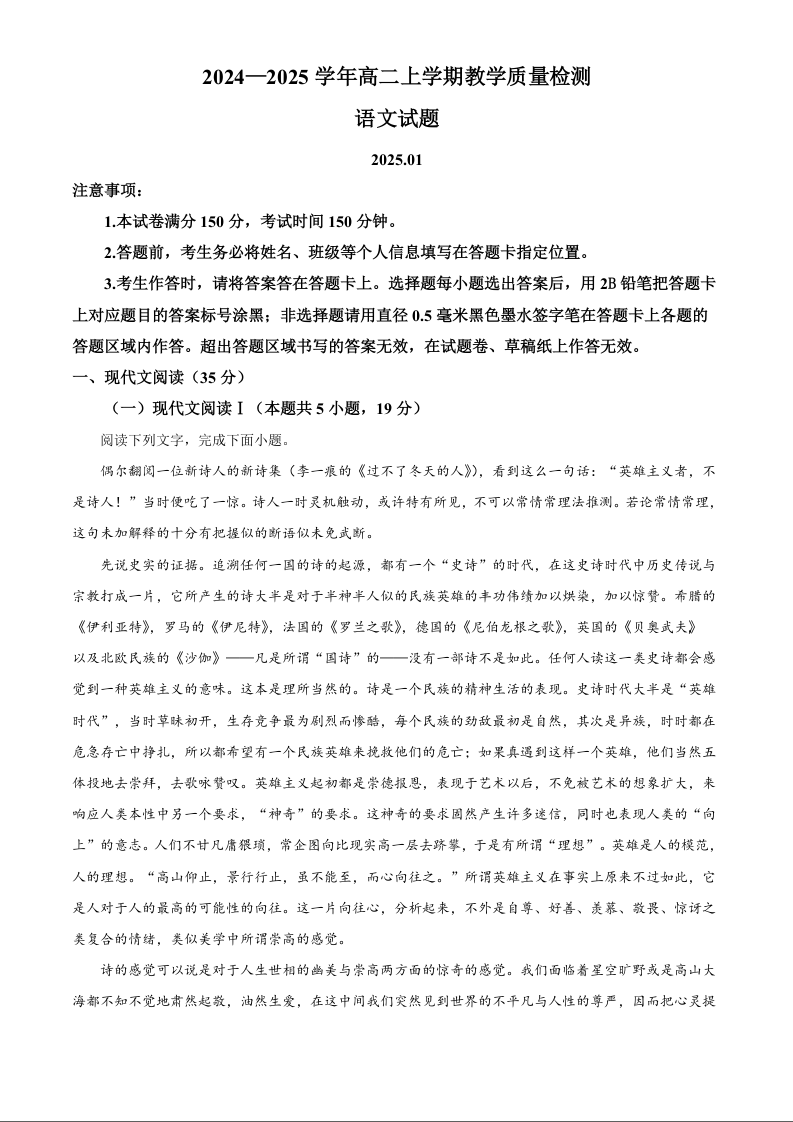 山东省菏泽市2024-2025学年上学期1月高二期末考试语文(解析版)