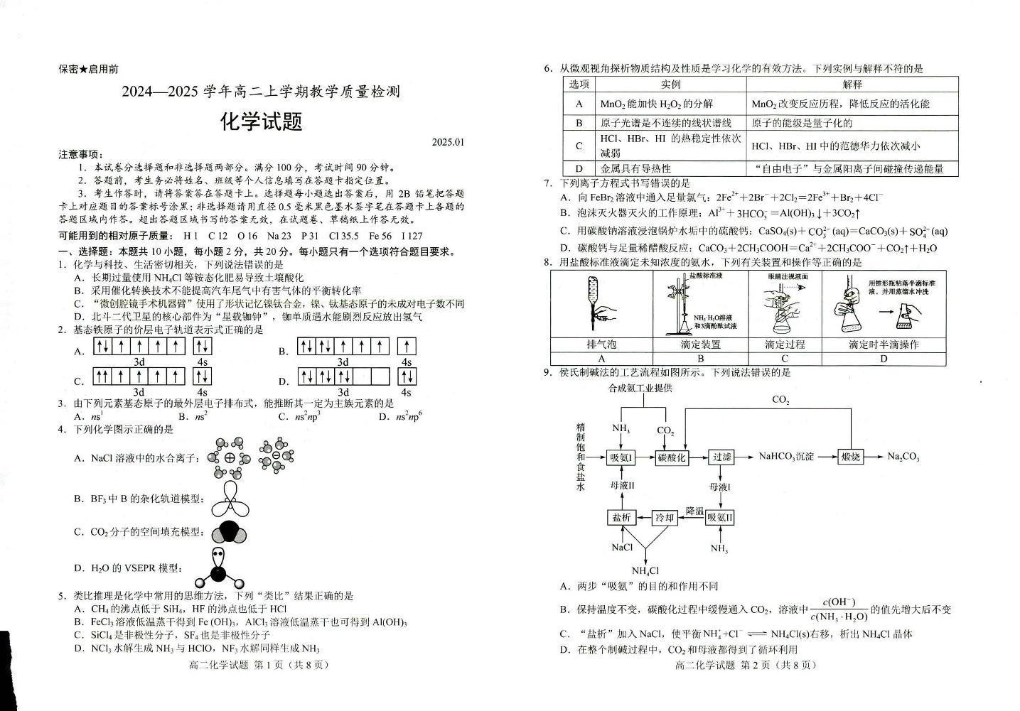 山东省菏泽市2024-2025学年上学期1月高二期末考试化学