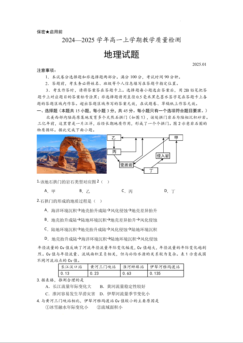 山东省菏泽市2024-2025学年上学期1月高二期末考试地理+答案