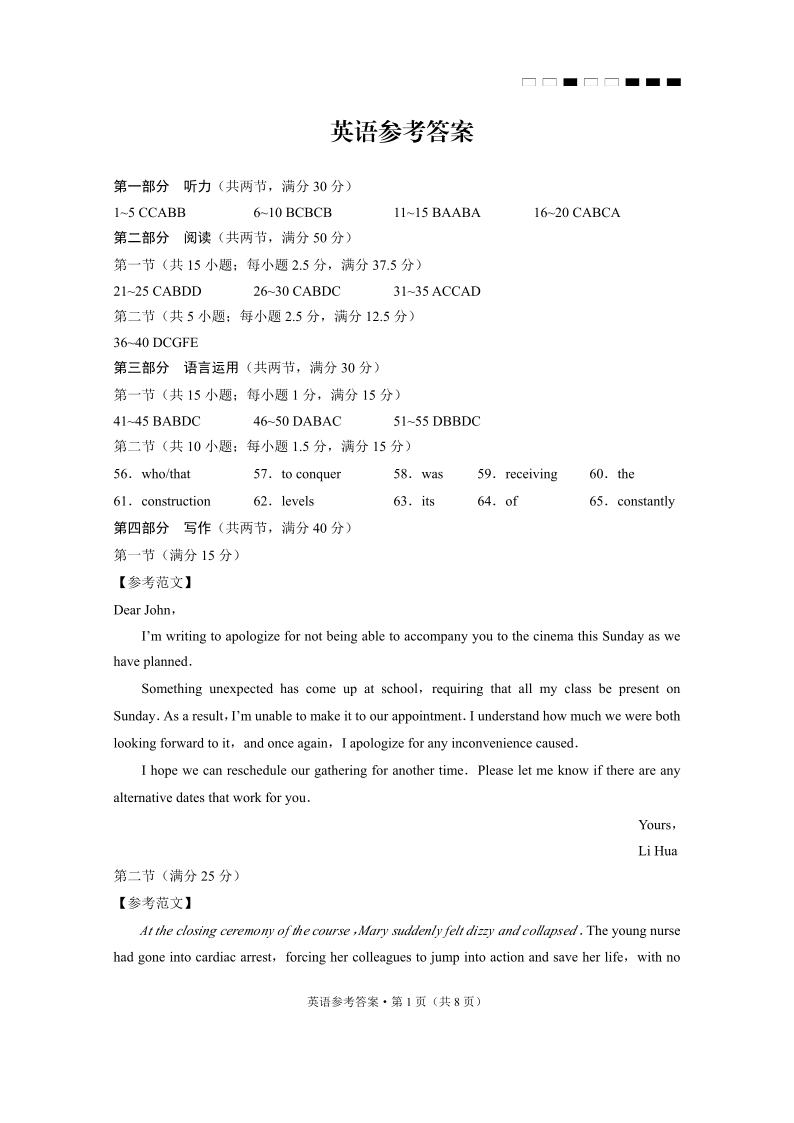 云南师大附中2025届高三下学期3月高考适应性月考卷(八)英语答案