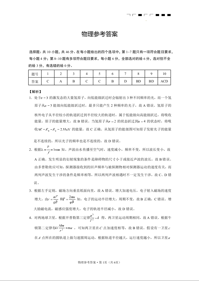 云南师大附中2025届高三下学期3月高考适应性月考卷(八)物理答案