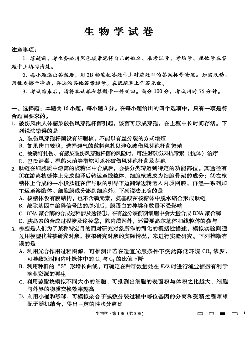 云南师大附中2025届高三下学期3月高考适应性月考卷(八)生物