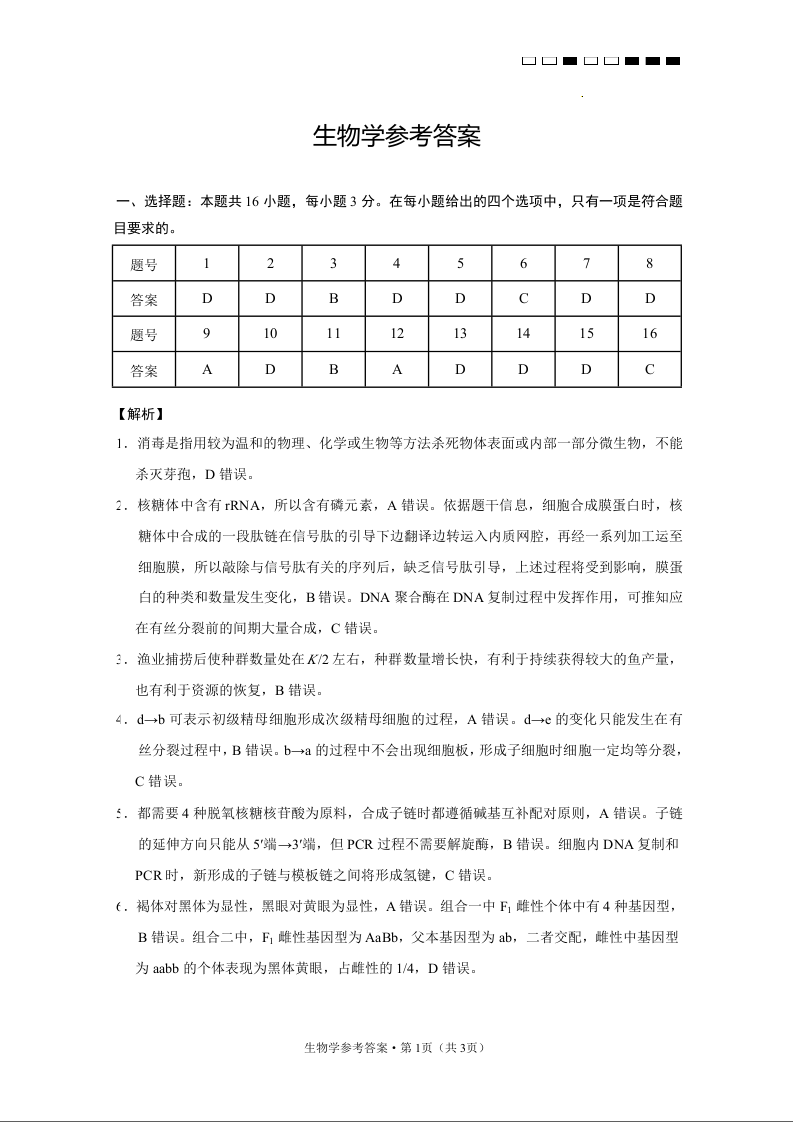云南师大附中2025届高三下学期3月高考适应性月考卷(八)生物答案
