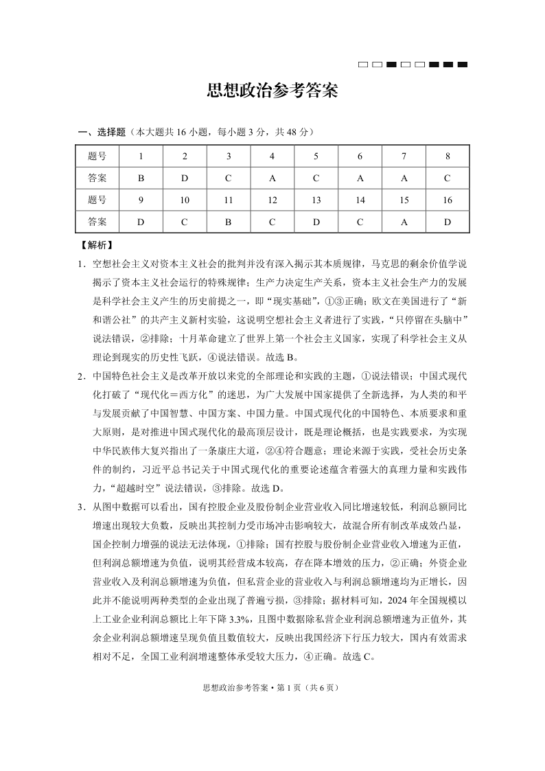 云南师大附中2025届高三下学期3月高考适应性月考卷(八)政治答案