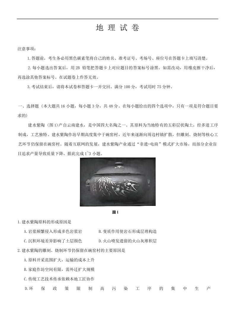 云南师大附中2025届高三下学期3月高考适应性月考卷(八)地理