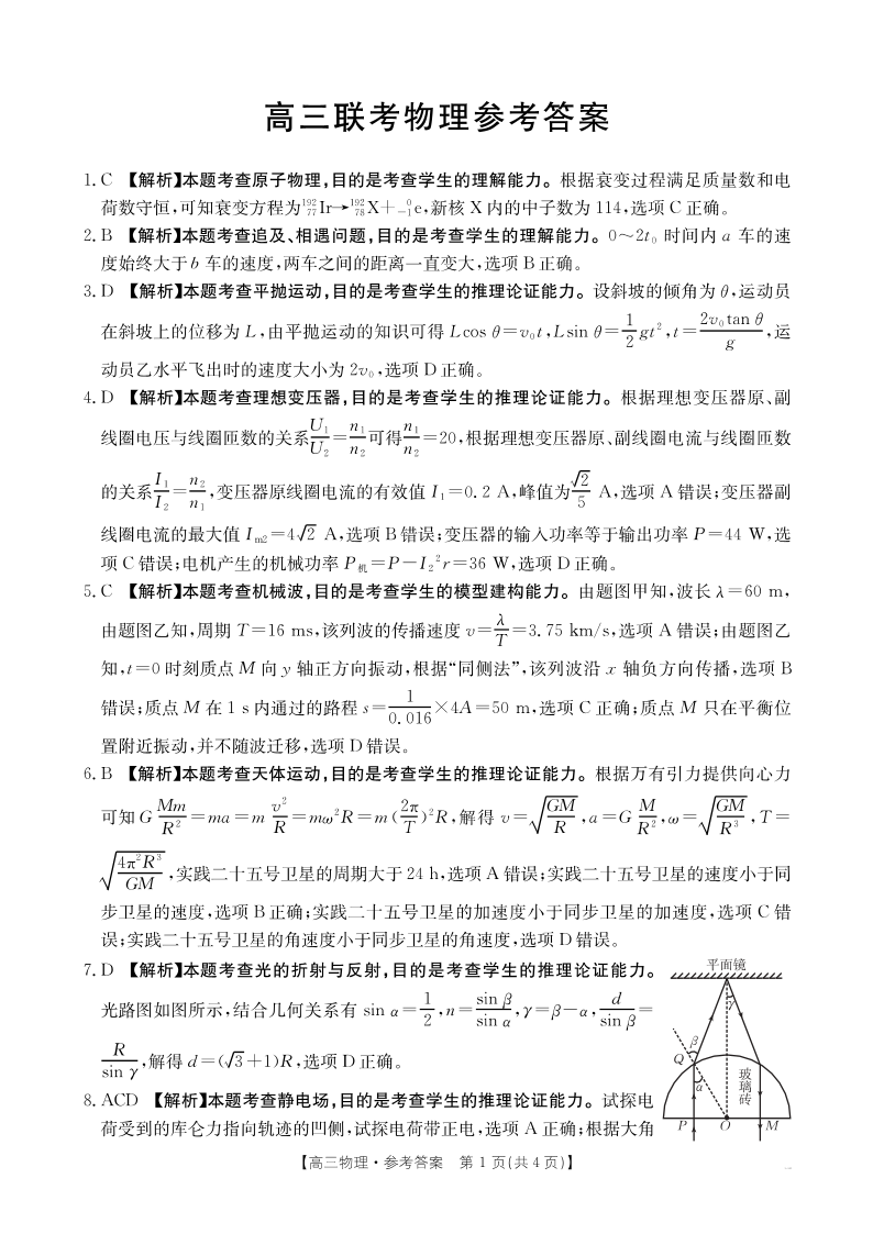 贵州省安顺市2025届高三下学期3月二模联考物理答案