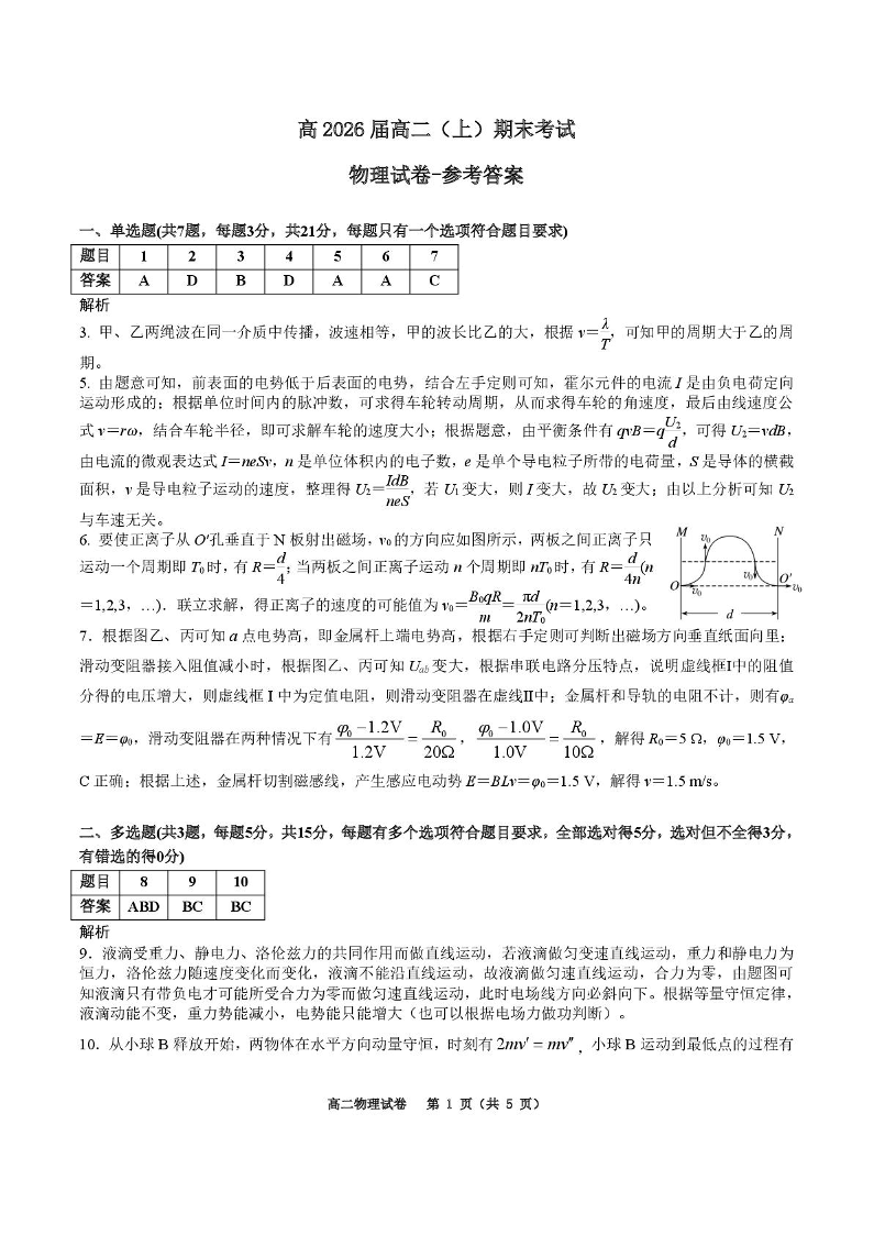 重庆市巴蜀中学教育集团2024-2025学年上学期1月高二期末考试物理答案