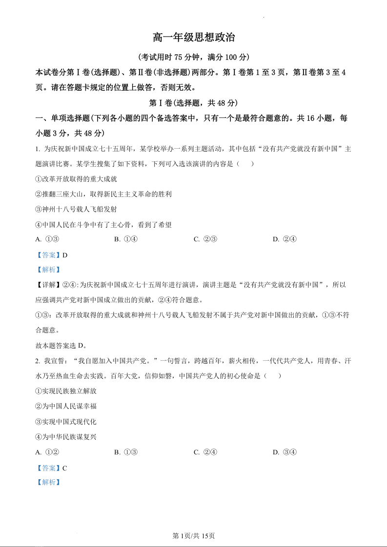 广西桂林市2023—2024学年高一下学期期末质量检测考试政治(精品解析版)