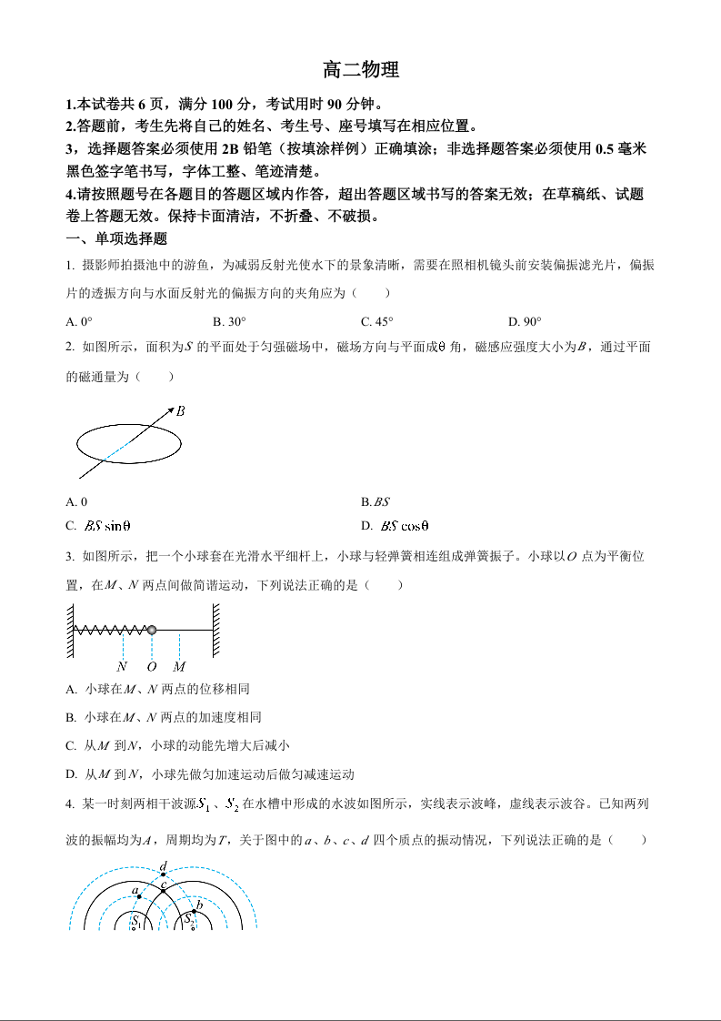 山东省威海市2024-2025学年上学期1月高二期末考试物理(原卷版)