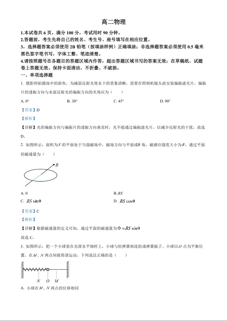 山东省威海市2024-2025学年上学期1月高二期末考试物理(解析版)