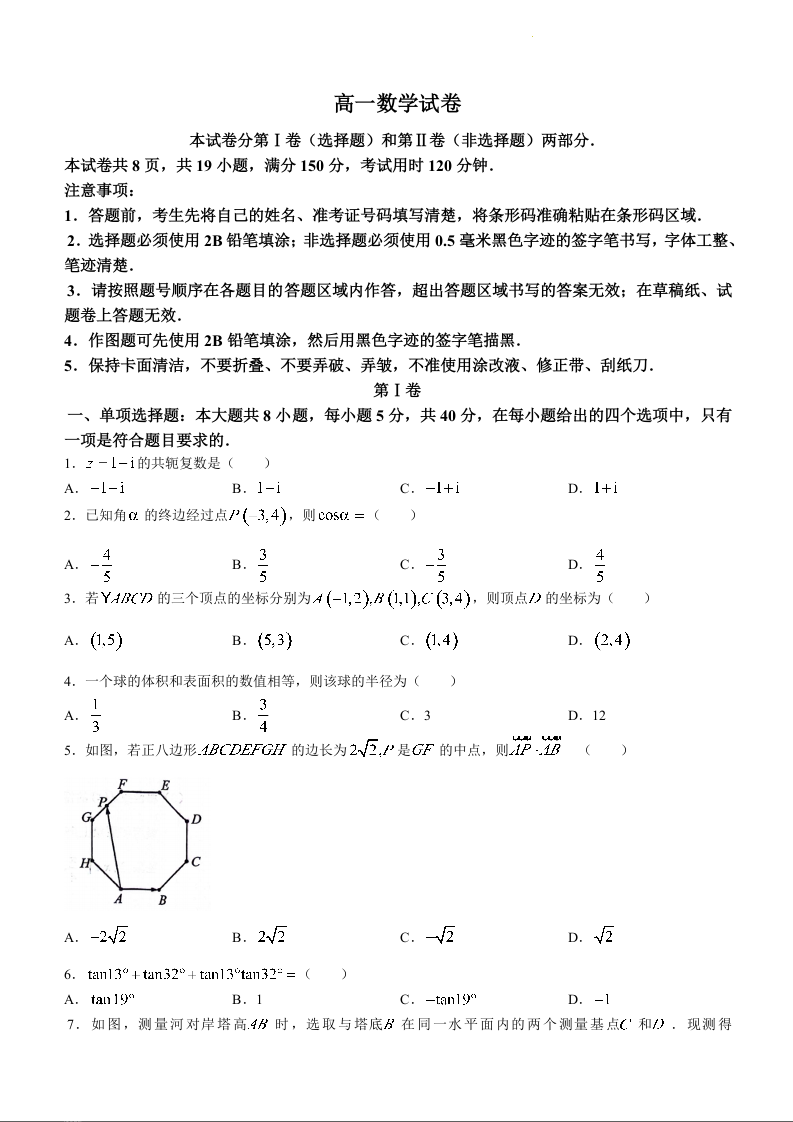 黑龙江省齐齐哈尔市2023-2024学年高一下学期7月期末考试数学+答案