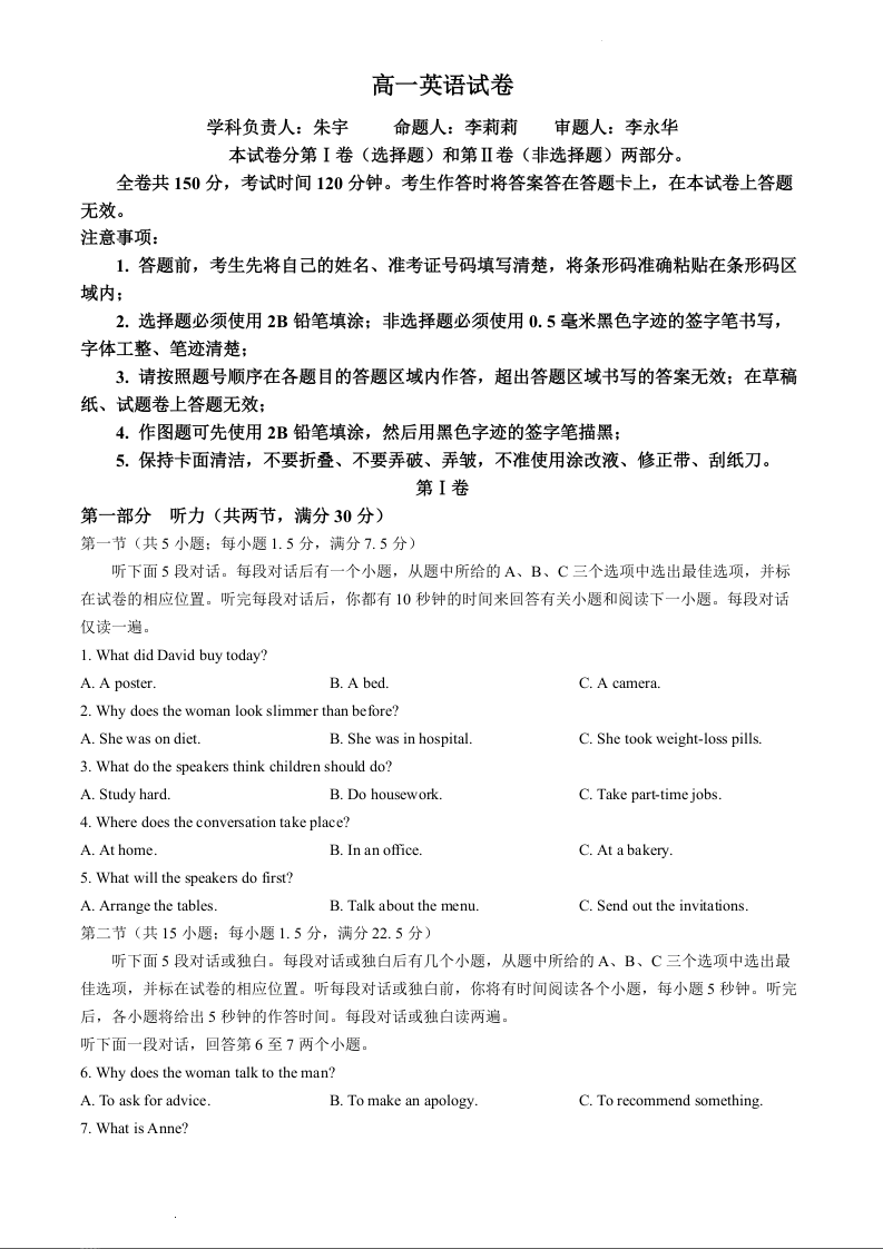 黑龙江省齐齐哈尔市2023-2024学年高一下学期7月期末考试英语+答案