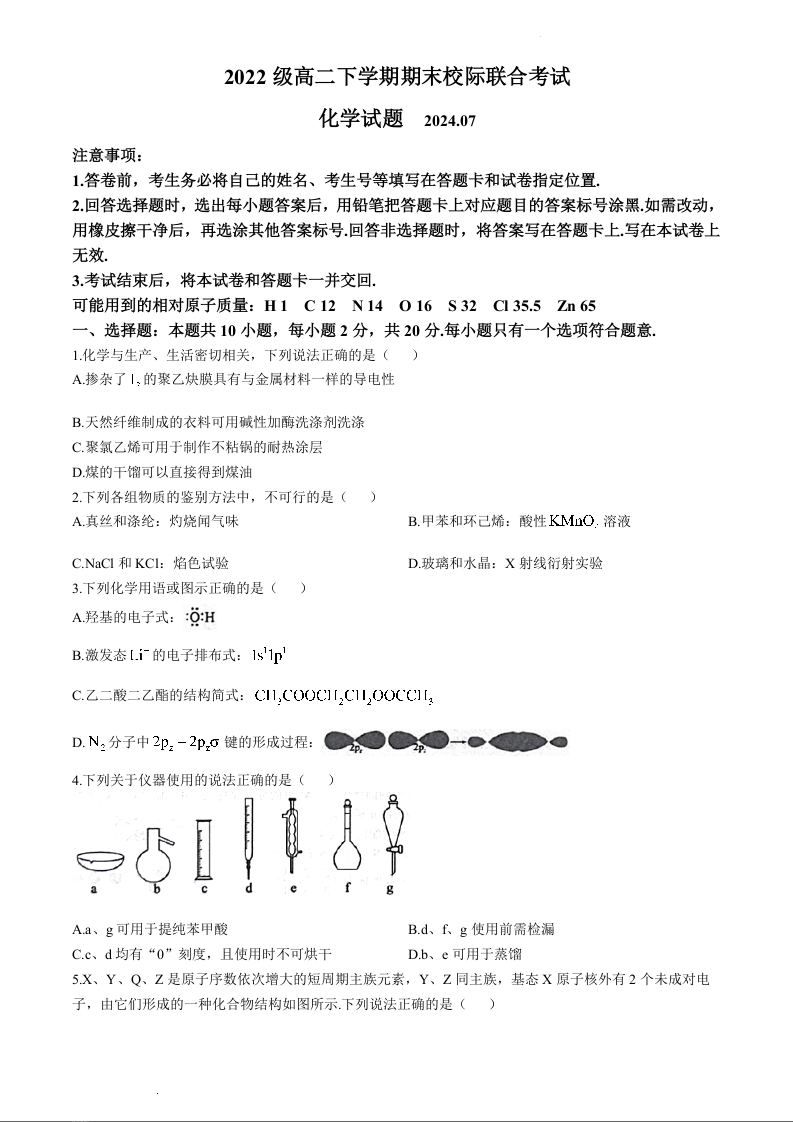 山东省日照市2023-2024学年高一下学期期末考试化学