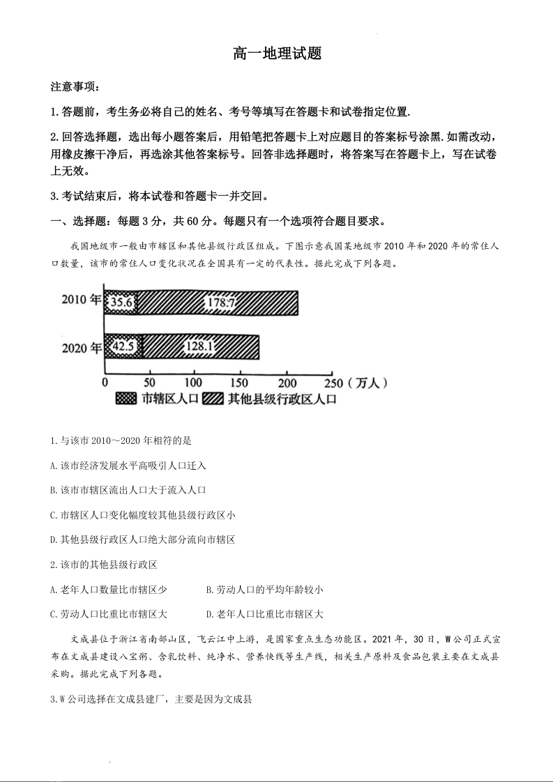 山东省日照市2023-2024学年高一下学期期末考试地理