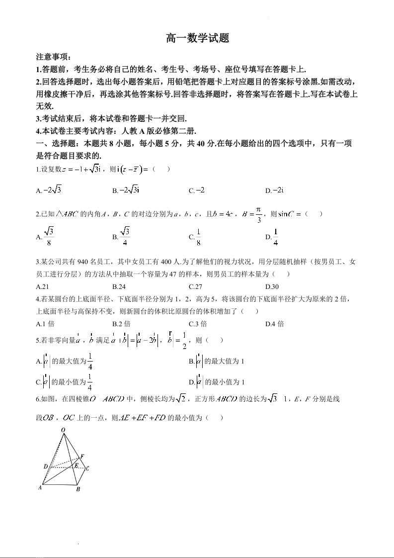 山西省长治市2023-2024学年高一下学期7月期末考试数学