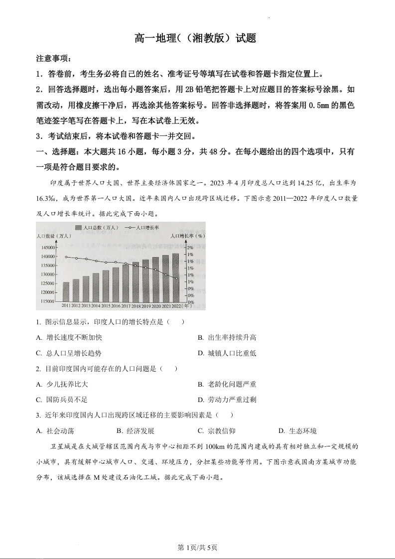 山西省长治市2023-2024学年高一下学期7月期末考试地理(原卷版)