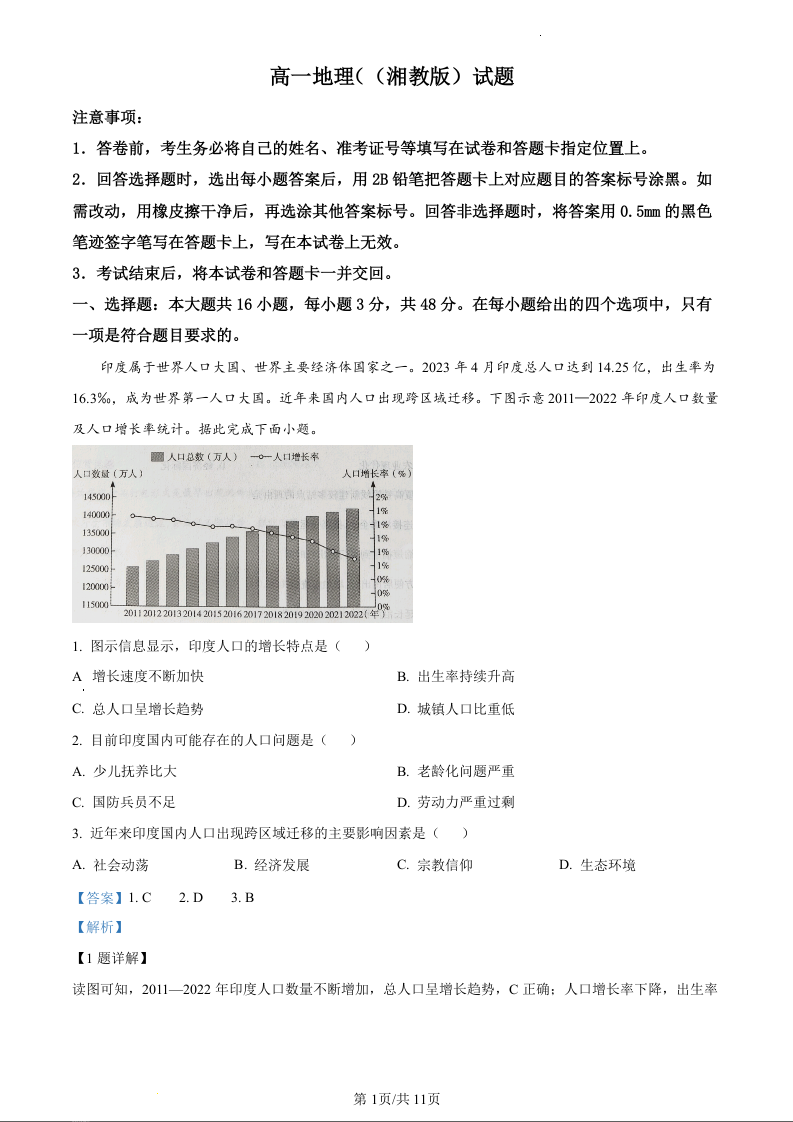 山西省长治市2023-2024学年高一下学期7月期末考试地理(精品解析版)