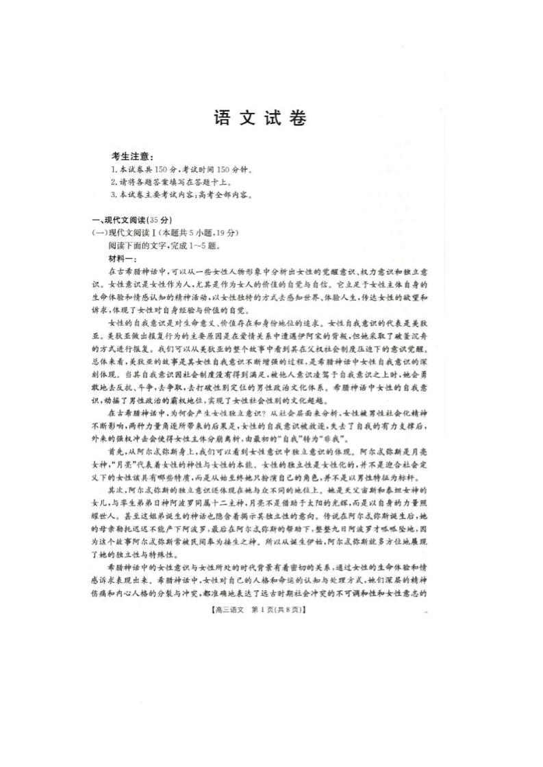 辽宁省抚顺市六校协作体2024-2025学年下学期高三期初检测语文