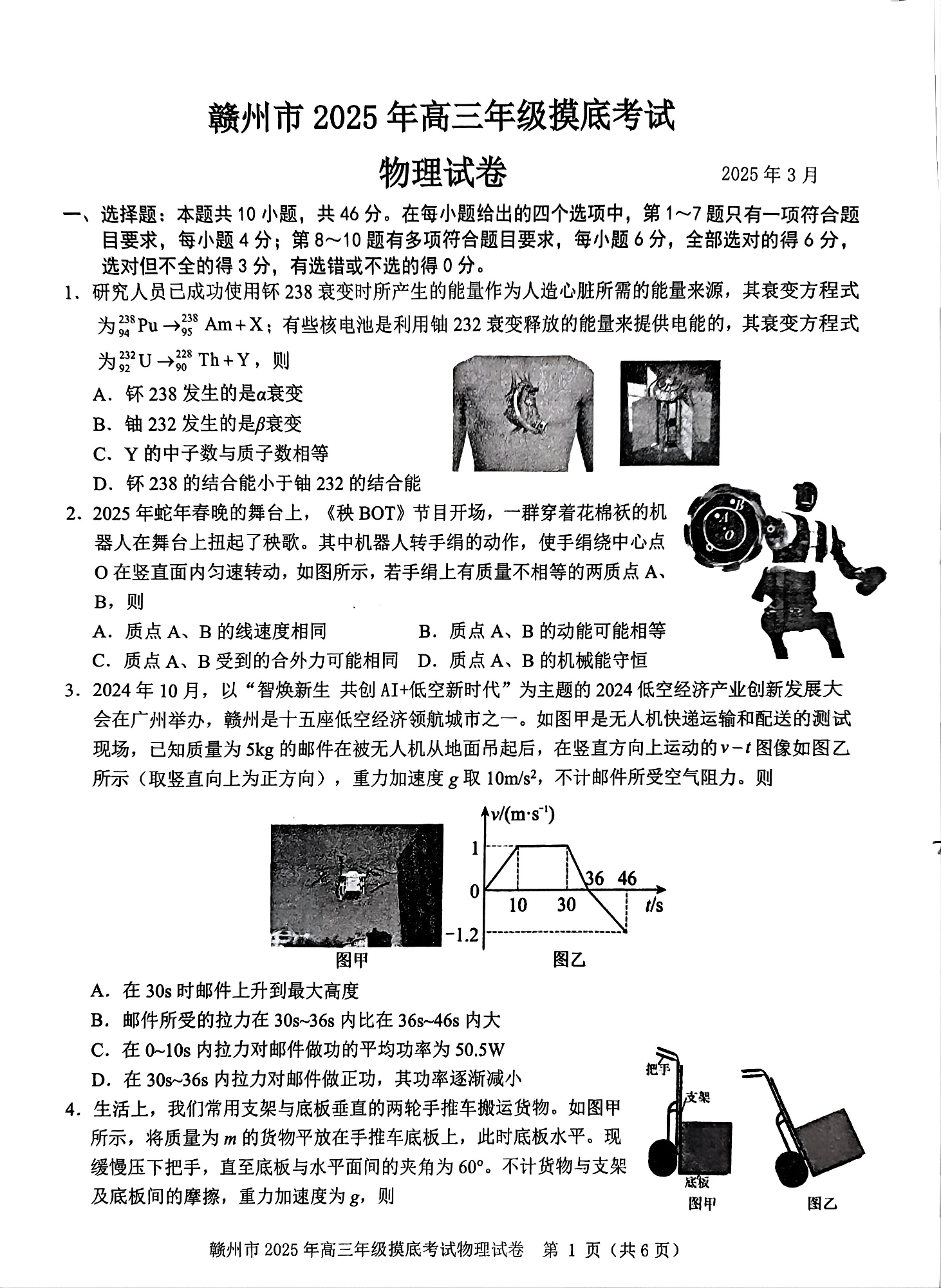 江西省赣州市2024-2025学年下学期3月高三一模考试物理