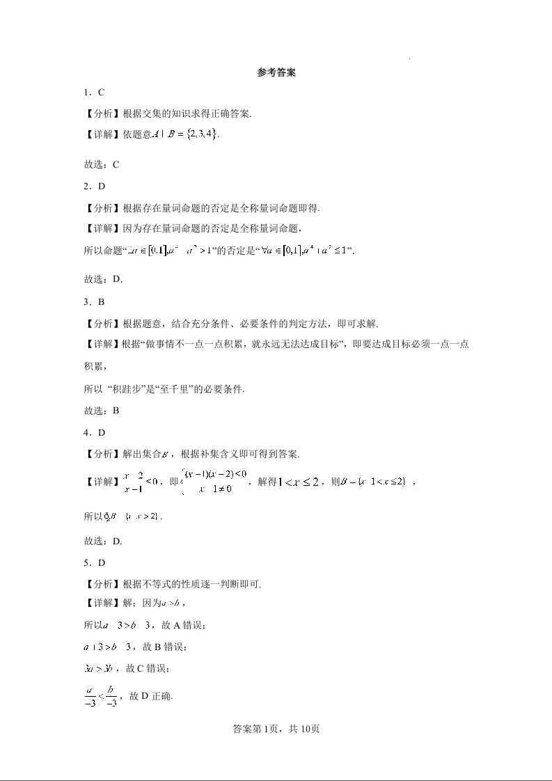甘肃省张掖市某重点校2023-2024学年高一上学期9月月考数学答案