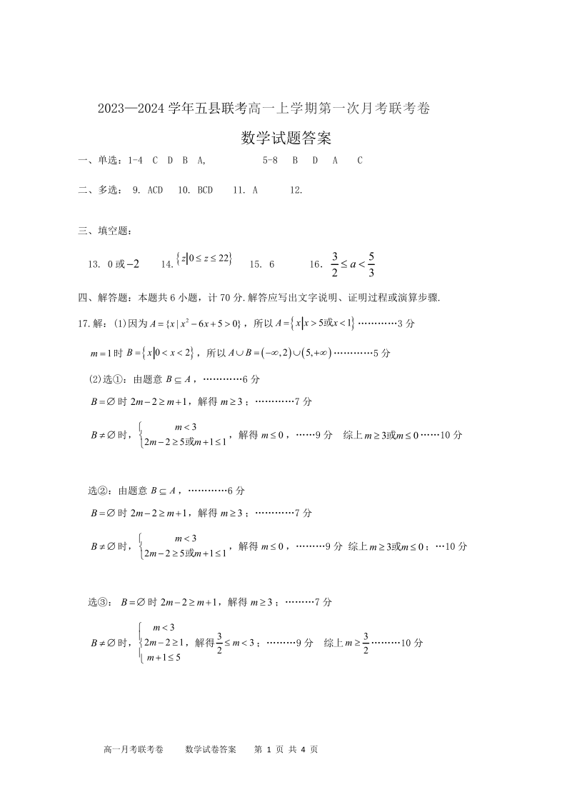 河南省河南中原名校联考2023-2024学年高一上学期9月月考数学答案