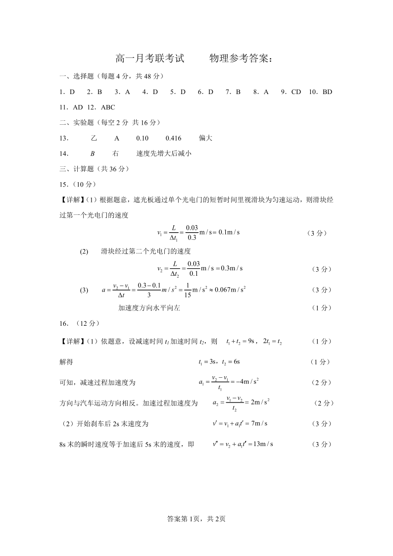 河南省河南中原名校联考2023-2024学年高一上学期9月月考物理答案