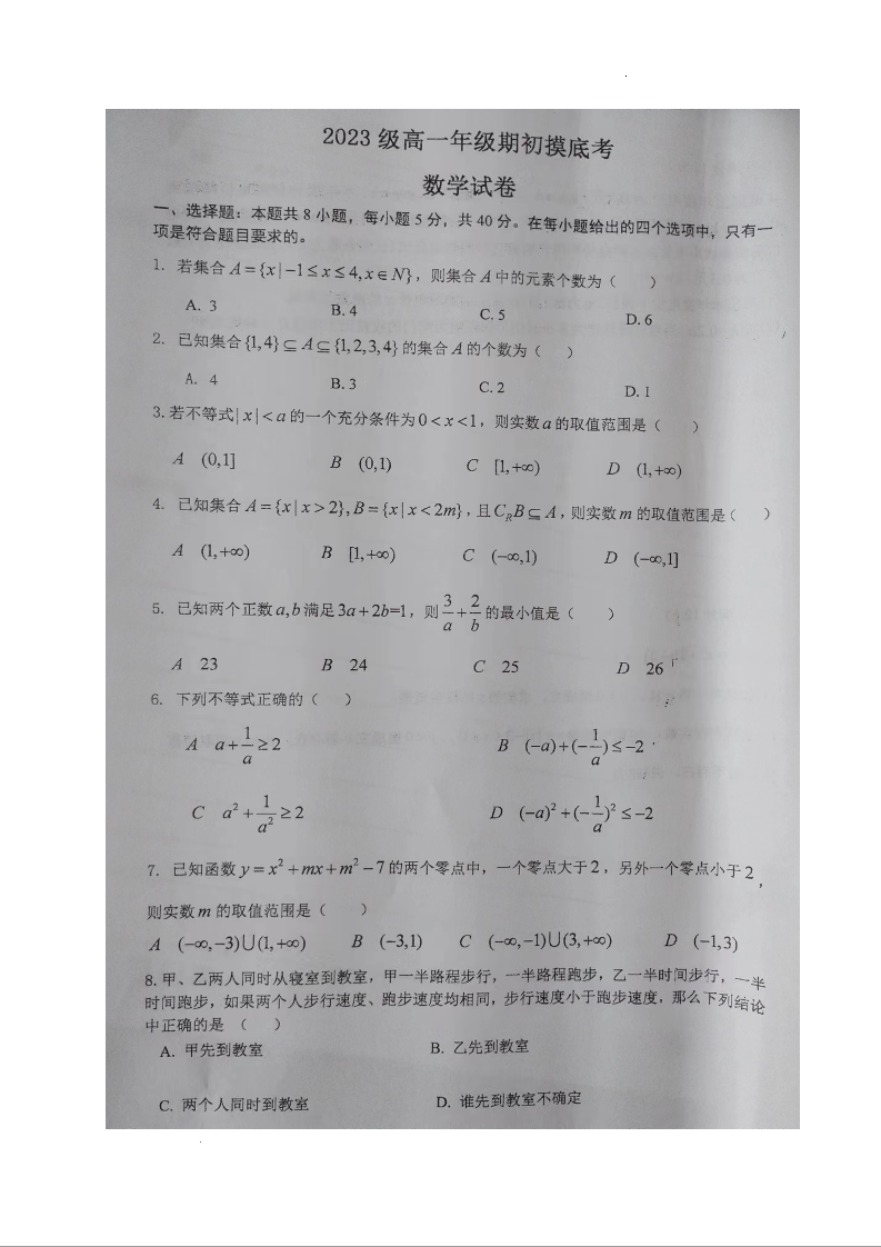 江苏省连云港市灌云县南京师范大学灌云附属中学2023-2024学年高一上学期期初摸底考试数学
