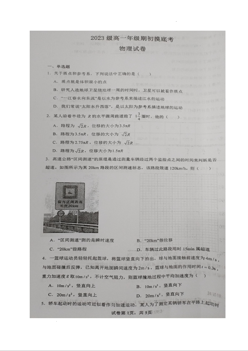 江苏省连云港市灌云县南京师范大学灌云附属中学2023-2024学年高一上学期期初摸底考试物理