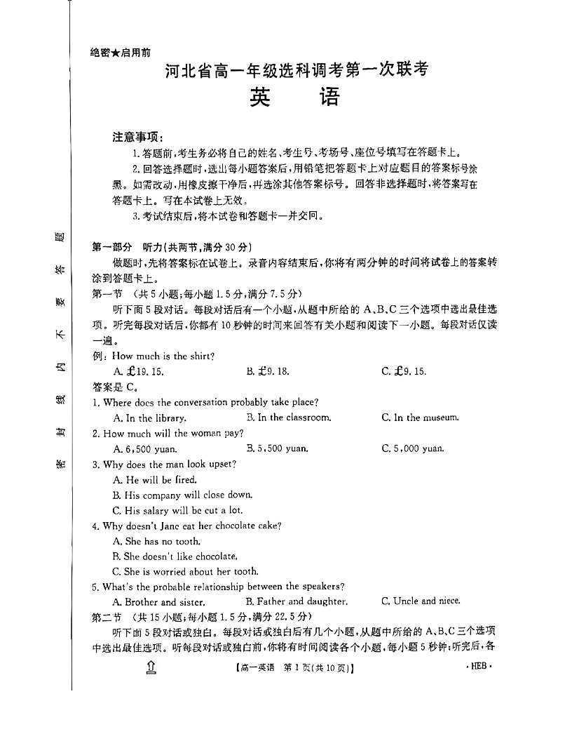 河北省保定市部分高中2023-2024学年高一上学期10月月考英语