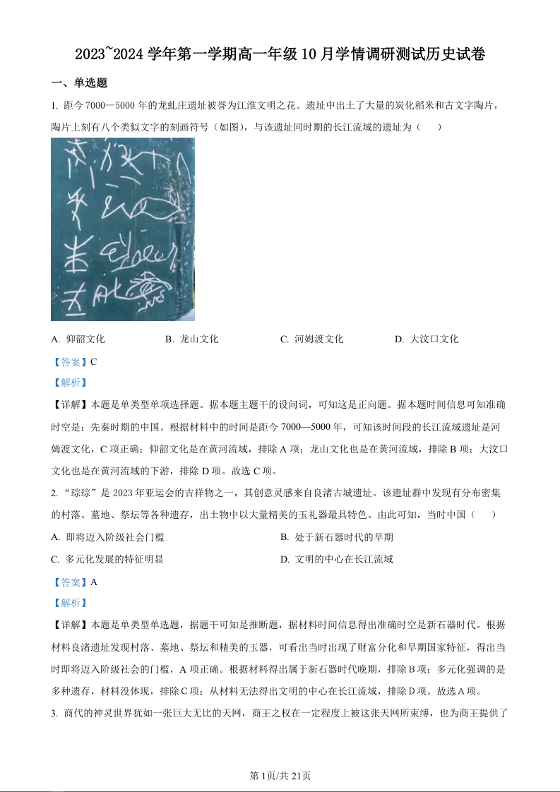 江苏省高邮市2023-2024学年高一上学期10月联考历史(精品解析版)