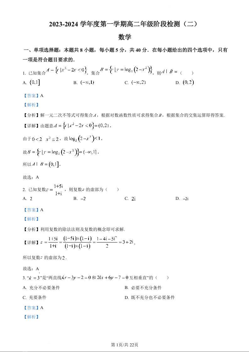 江苏省海安高级中学2023-2024学年高一上学期10月月考数学(精品解析版)