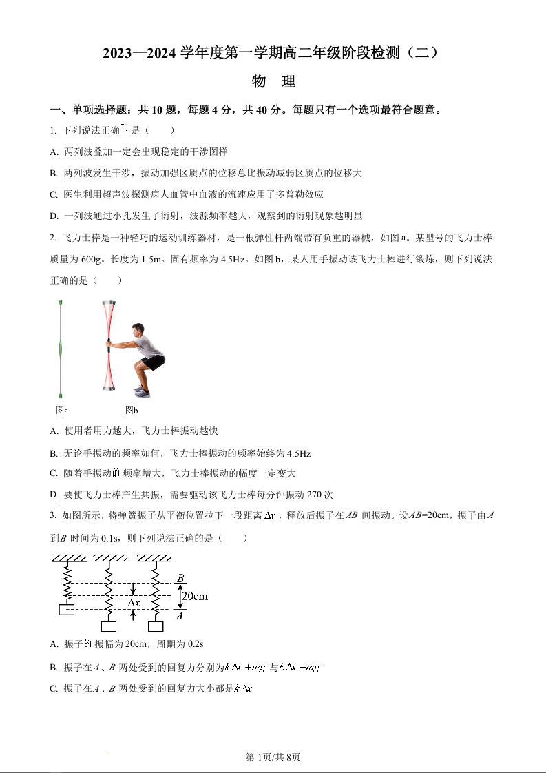 江苏省海安高级中学2023-2024学年高一上学期10月月考物理(原卷版)