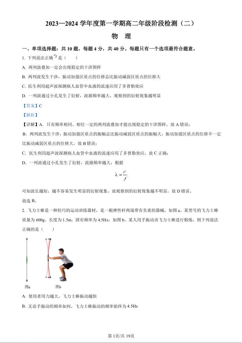 江苏省海安高级中学2023-2024学年高一上学期10月月考物理(精品解析版)