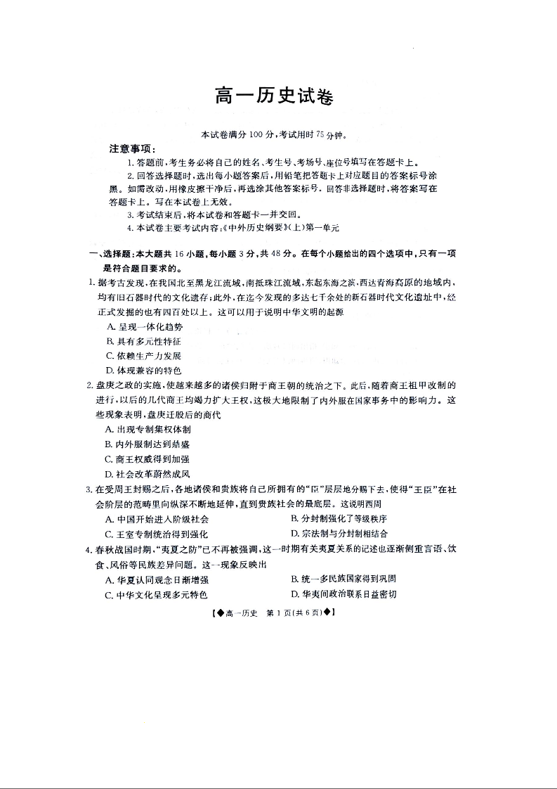 江西省部分学校2023-2024学年高一上学期10月联考历史+答案