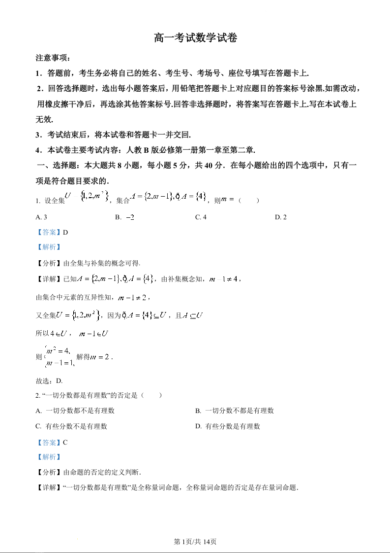 辽宁省县级重点高中联合体2023-2024学年高一上学期10月联考数学(精品解析版)