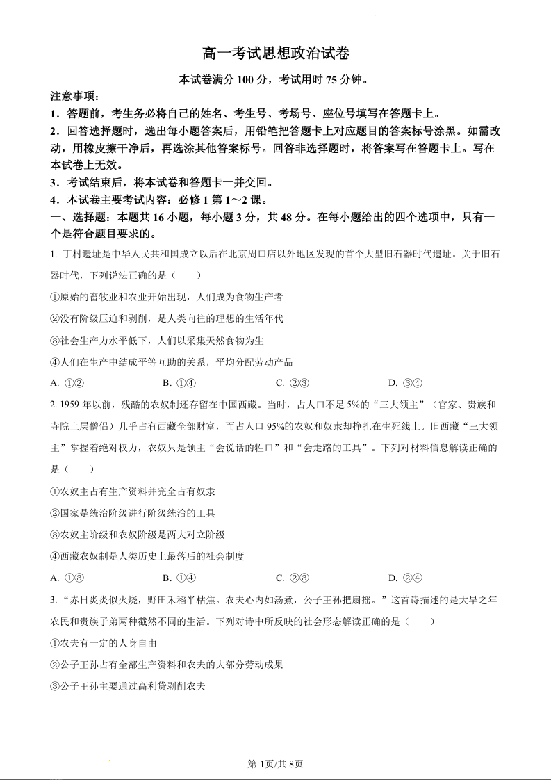 辽宁省县级重点高中联合体2023-2024学年高一上学期10月联考政治(原卷版)
