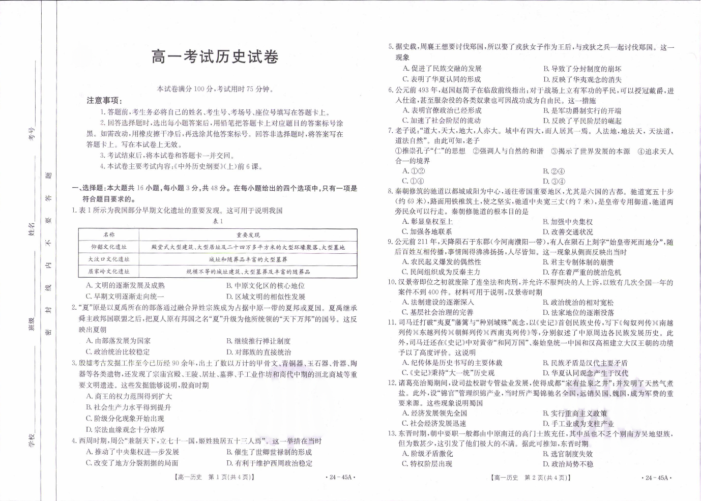 辽宁省县级重点高中联合体2023-2024学年高一上学期10月联考历史