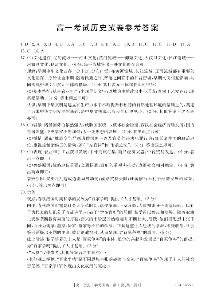 辽宁省县级重点高中联合体2023-2024学年高一上学期10月联考历史答案