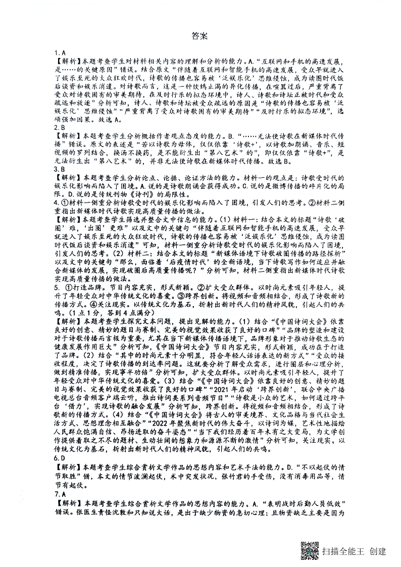重庆市巴蜀中学校2023-2024学年高一上学期10月月考语文答案
